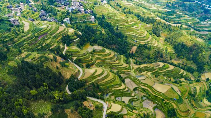梯田环绕中的寨大-八吉农村公路