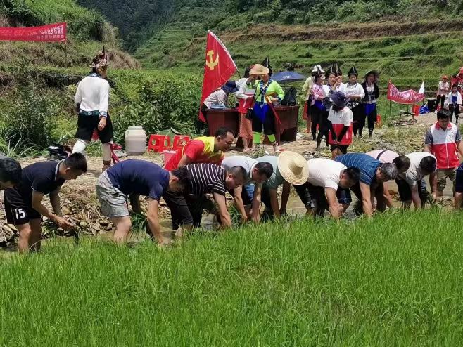 图四:游客在融水县良寨乡紫黑香糯节上体验插秧